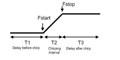 Fstart=Start Frequency, Fstop=Stop Frequency T1=Delay until Fstart, T2=Chirp time, T3=Delay after Fstop |