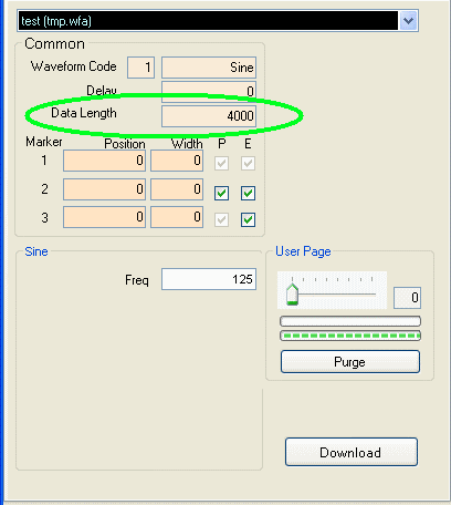 You can also change the number of points that the waveform will have per cycle. To do this, change the Data Length to the number