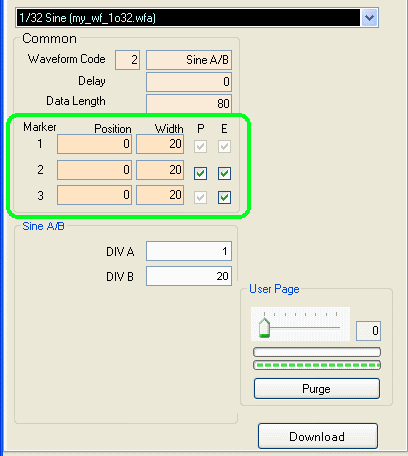 Markers can help you determine if the waveform that is produced is correct. We have provided three markers, each with different