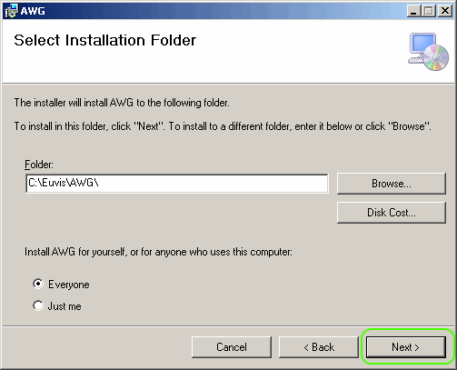 » After making sure you have the Microsoft .NET 4.0 Framework installed, go to the directory where you downloaded the Euvis AWG installation files.