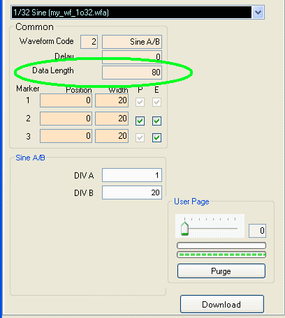 You can also change the number of points that the waveform will have per cycle. To do this, change the Data Length to the number