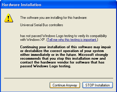 » When setup attempts to install the USB controller drivers, Windows will give you a