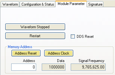 * Please note that you may have to check or uncheck the CK2S box in the Signature tab of the GUI in order to get the correct first memory address. If you change CK2S you will need to restart the waveform, stop the waveform and then reset the memory address to get the updated first memory address.