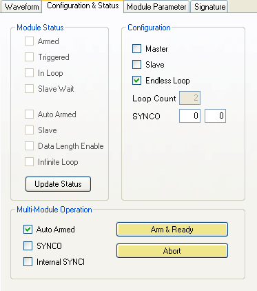 mode. In the "Armed" state of the Master mode the board waits for the TRIG signal to begin waveform