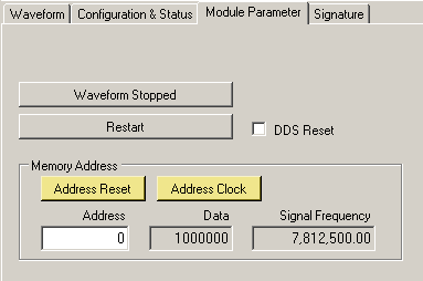 Please note that Memory Address walking will only work if the DSM is in the Free Run mode and waveform output is stopped.