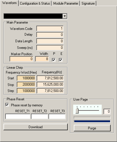 Click this button to send current waveform parameters to the board. You will have to use this button whenever you change any