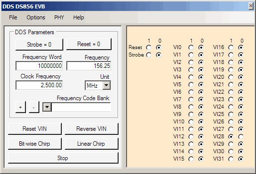 » The DDS EVB GUI application window should now open.