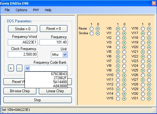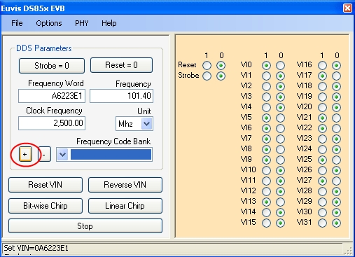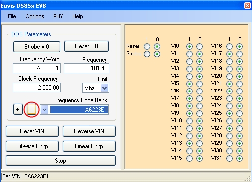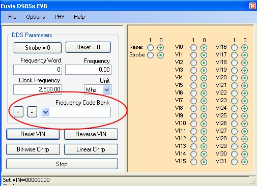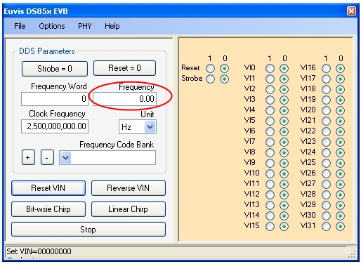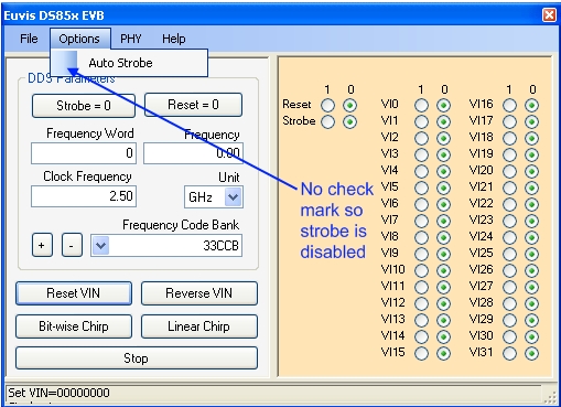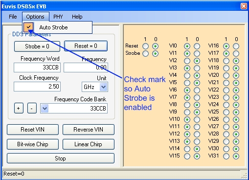 When Auto Strobe is off, when the user changes either the Frequency Word box, Frequency box or the
