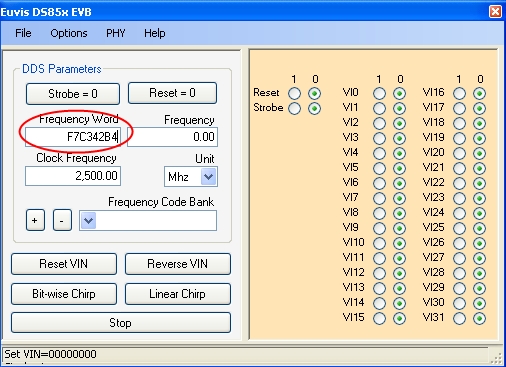 representing every 4 bits of the frequency word. The leftmost hex digit in the frequency word