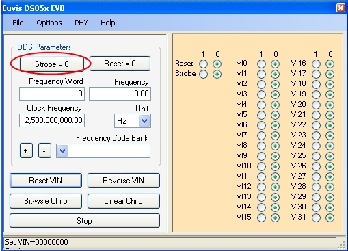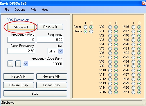 » Now we need to strobe the changes to the board. Click on Strobe = 0.