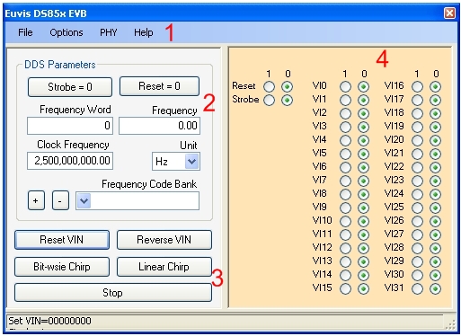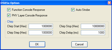 Function Console Response - when this is enabled, the program will write to a log file called "ds85x_evb.log". The program writes all instructions that are sent to the DDS board in the log file. When disabled, the program will not write to the log file.