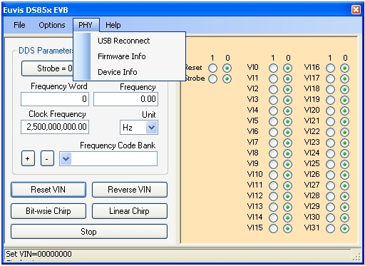 PHY Layer Response - when this is enabled, the program will write to the same log file above all information it gets from the DDS board.
