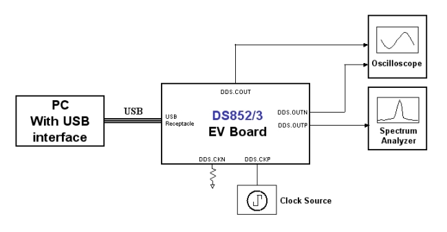 - Feed the clock to board at DDS.CKP located on the right edge of the board.