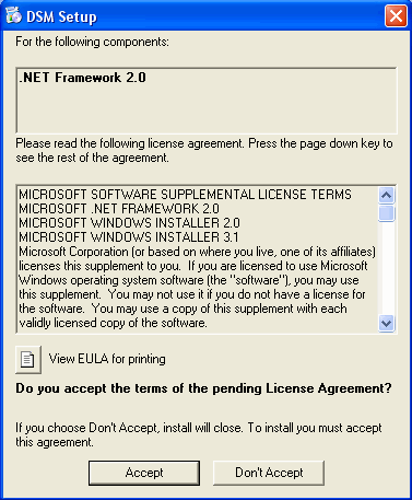 » If you do not have .NET Framework 2.0, the setup program will prompt you to install it.