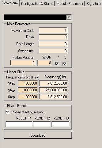 Click this button to send current waveform parameters to the board. You will have to use this button whenever you change any