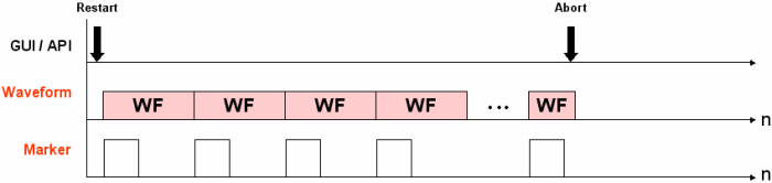 In Continuous mode, the module starts waveform generation by a Restart command from the GUI or API-based