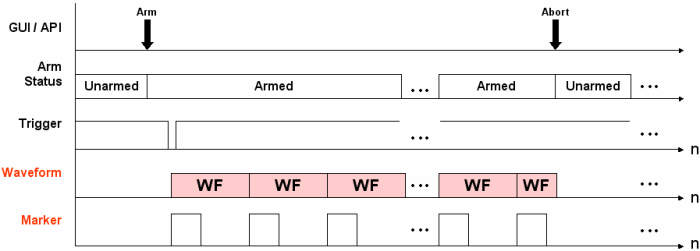 Once the waveform stops, the module will arm itself automatically and wait for the next trigger signal.